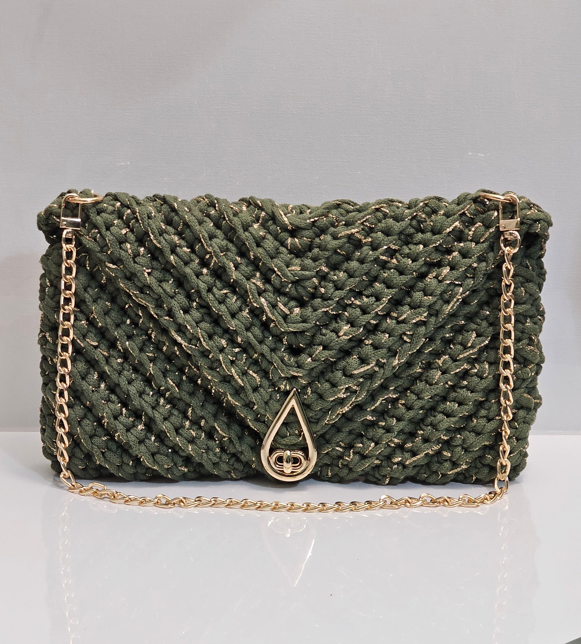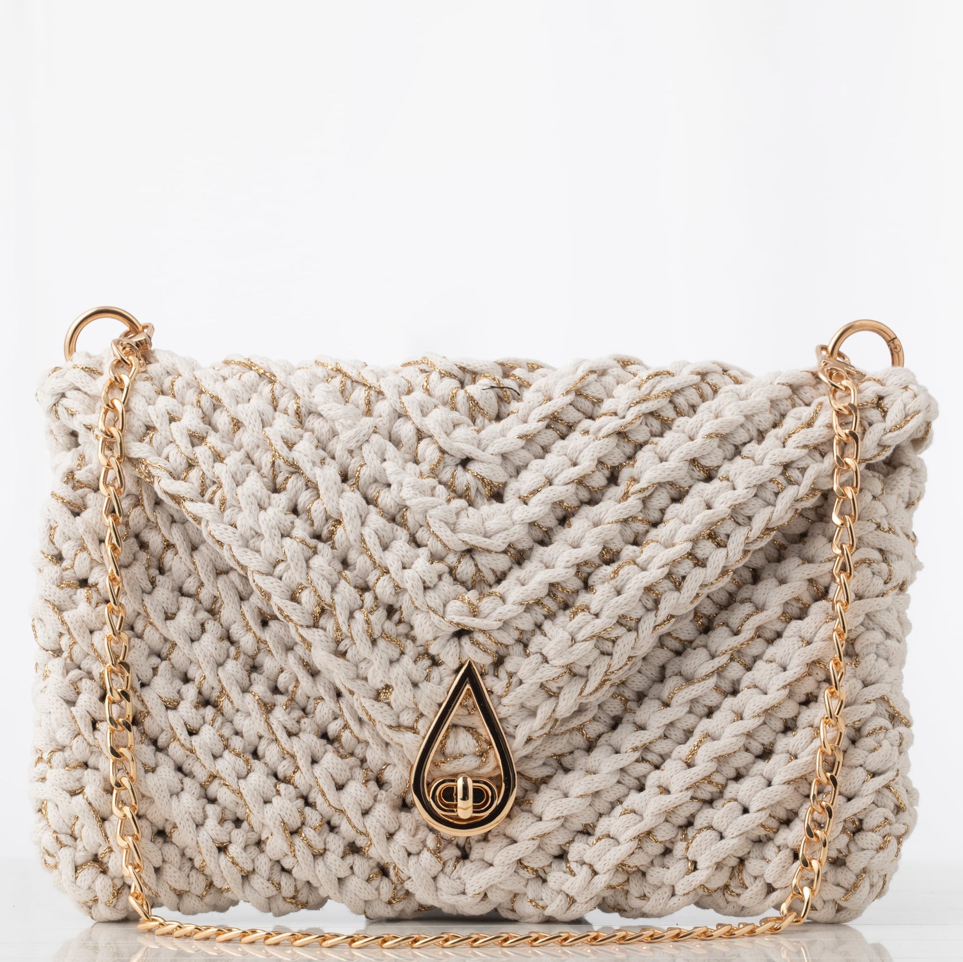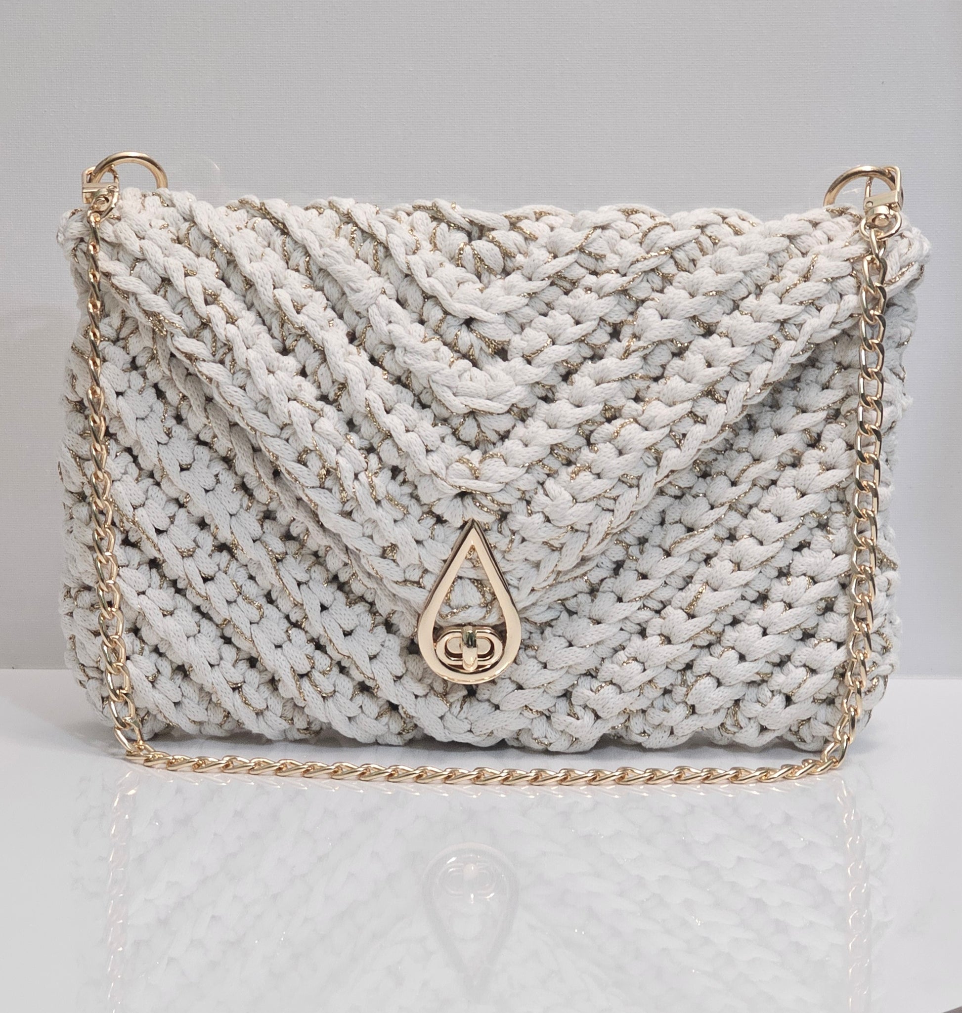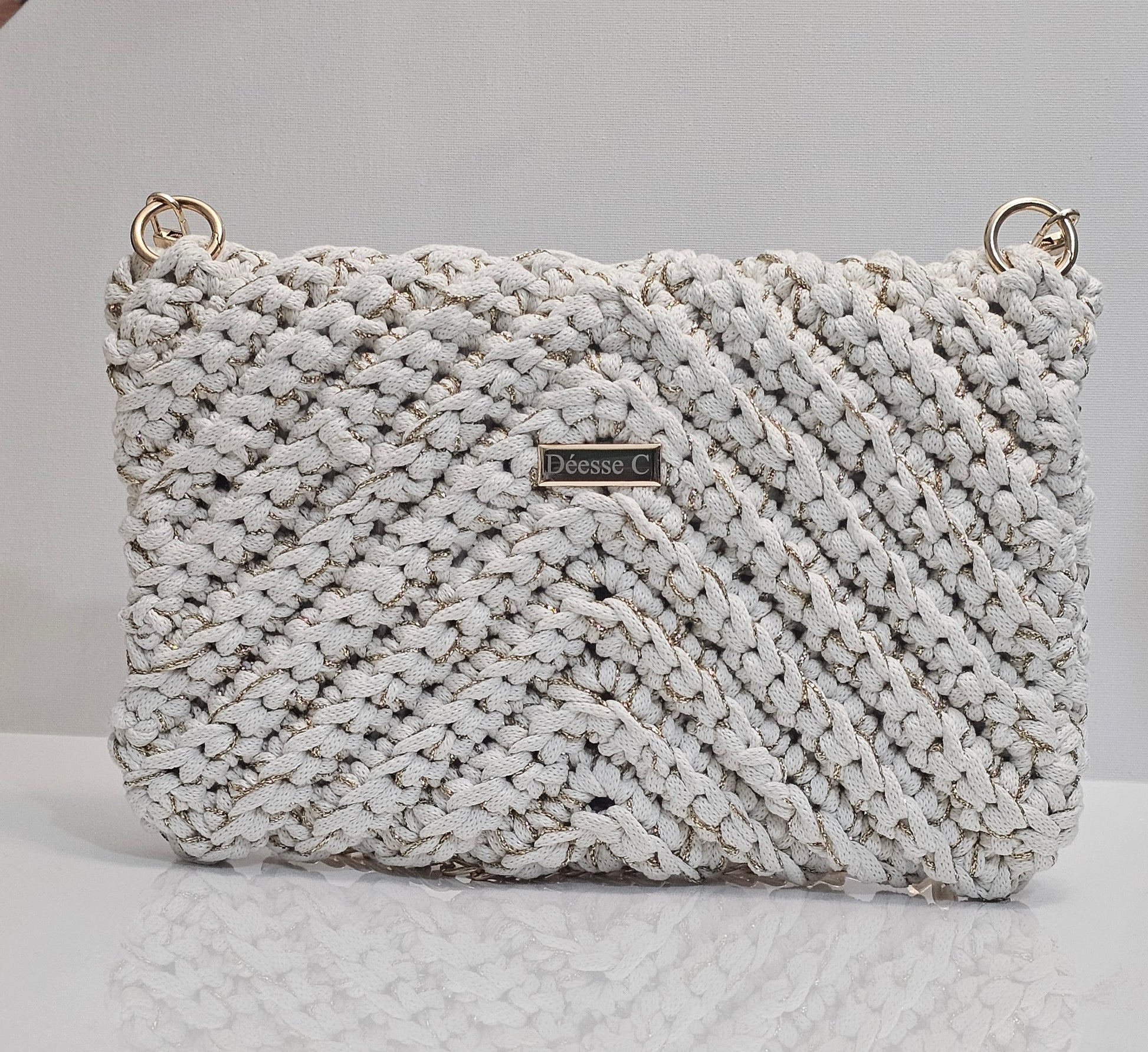 Sa fermeture dorée et sa plaque gravée au nom de la marque apportent une touche de raffinement, tandis que son anse en chaîne dorée lui confère grâce et modernité.
