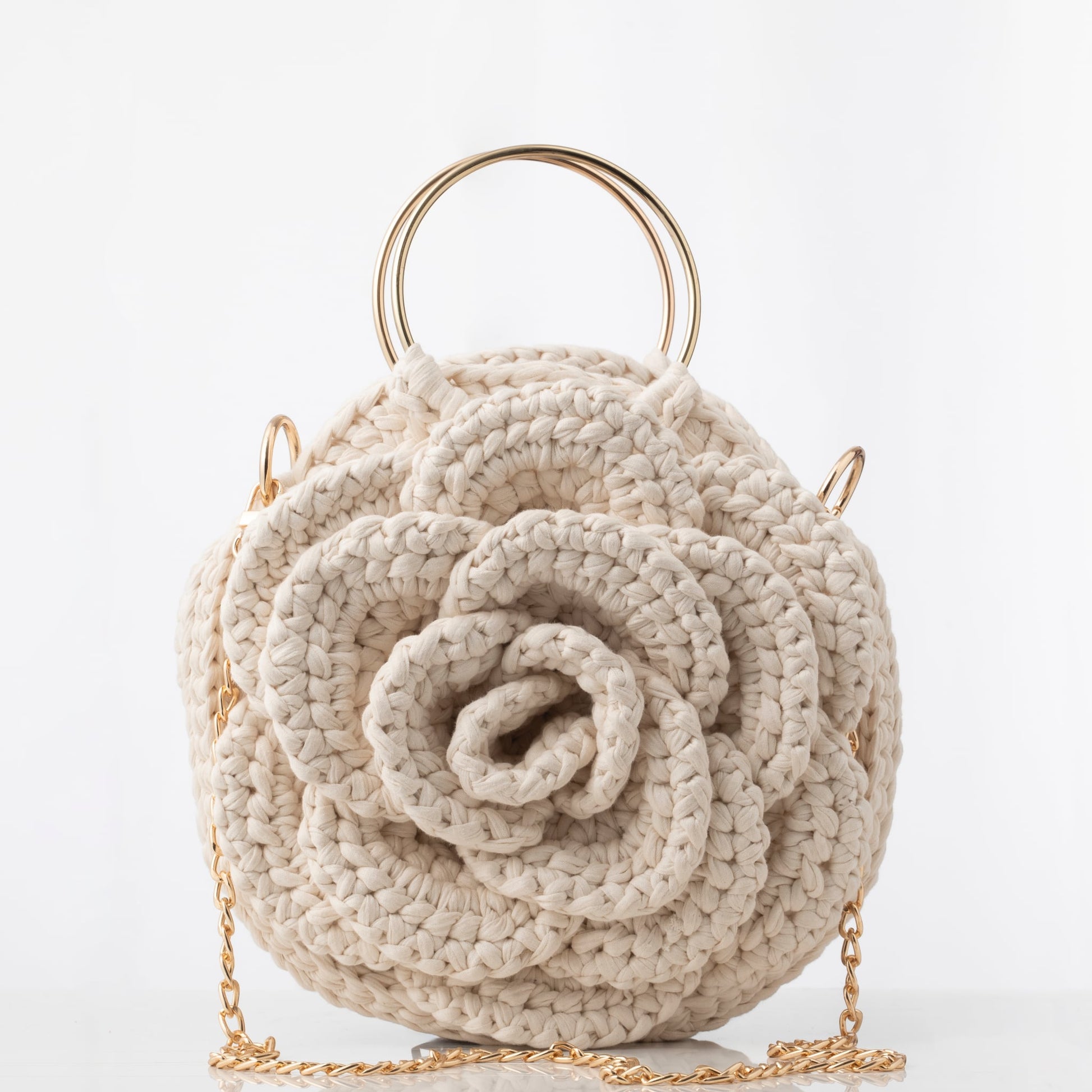 Sa rose crochetée à l'avant attire tous les regards, tandis qu'a l'arrière, une plaque dorée gravée au nom de la marque vient parfaire son raffinement.